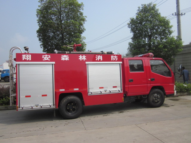 1.江鈴2T水罐消防車,選用江西五十鈴JX1061TSG23底盤基礎(chǔ)上加裝上裝部分而成,主要組成部分有容罐、器材箱、消防泵、消防炮、以及電器系統(tǒng)、傳動系統(tǒng)等,車輛設(shè)計(jì)精巧,外形美觀,線條流暢,整體式模式架結(jié)構(gòu),機(jī)動性能強(qiáng),環(huán)保性能好,人性化設(shè)計(jì),器材布置合理,取用方便,各專業(yè)及企業(yè)事消防隊(duì)的理想滅火裝備。
