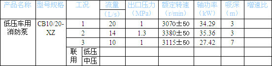 重慶五十鈴水罐消防車水罐容積2-2.5立方,罐體采用武漢優(yōu)質(zhì)碳鋼,內(nèi)做防腐處理,并檢測(cè)罐體測(cè)漏,探傷,測(cè)壓。 CB10/20消防泵工況性能參數(shù)表