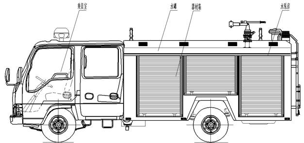 總體布置 | 整車由消防員乘員室和車身兩大部分組成,車身布置采用整體框架式結(jié)構(gòu),內(nèi)藏水罐,兩邊為器材箱,后部為水泵房,罐體為平行長(zhǎng)方體廂式容罐。 |