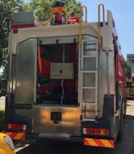 車身兩側安裝紅、藍兩色頻閃燈,上裝后部安裝35W消防探照燈1個火場照明 |