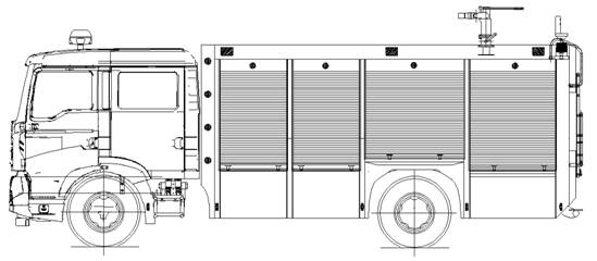 整車由消防員乘員室和車身兩大部分組成,車身布置采用內(nèi)藏罐式結(jié)構(gòu),左右兩側(cè)為器材箱,中部為水罐,器材箱后部為泵房。 |