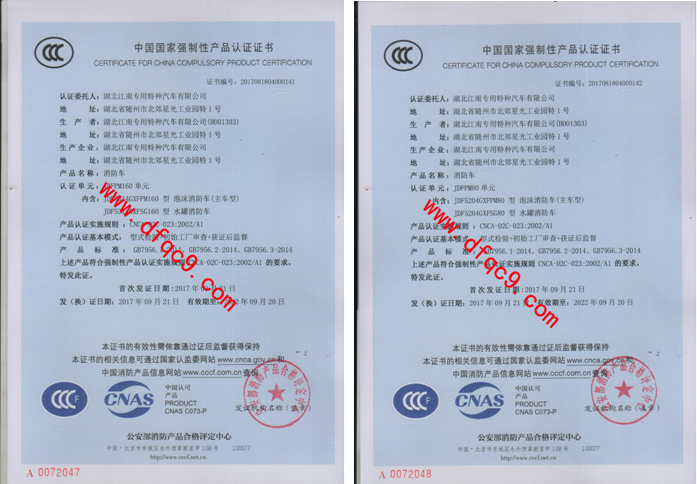 下來的四款消防車3C認(rèn)證車型的是重汽8噸水罐消防車、重汽8噸泡沫消防車和重汽24噸水罐消防車、重汽24噸泡沫消防車。此四款車型免征公告,工信部汽車新產(chǎn)品公告,CCCF認(rèn)證均已下發(fā),全國各地落軍牌、民用牌無憂。