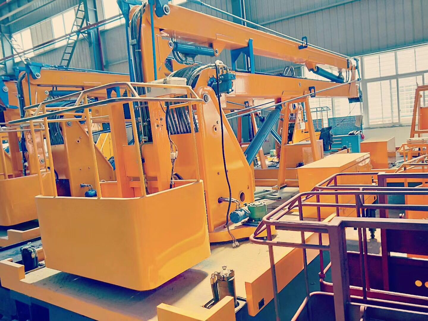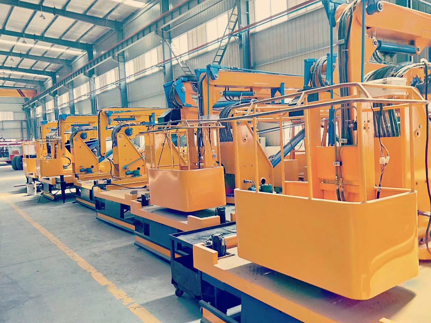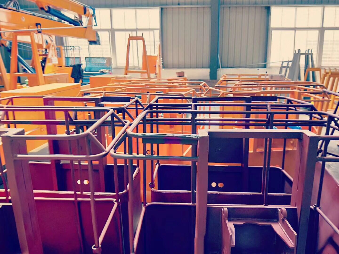 高空作業(yè)車小件全部拼接組裝完成,流水形式組裝,工人裝配工序技術熟練,質量更保障。